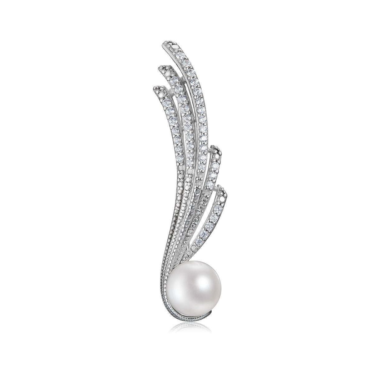 Nasonpearl/Каталог/Броши/Серебряная брошь Arioso с жемчугом и циркониями от ювелирной компании АРИНА/